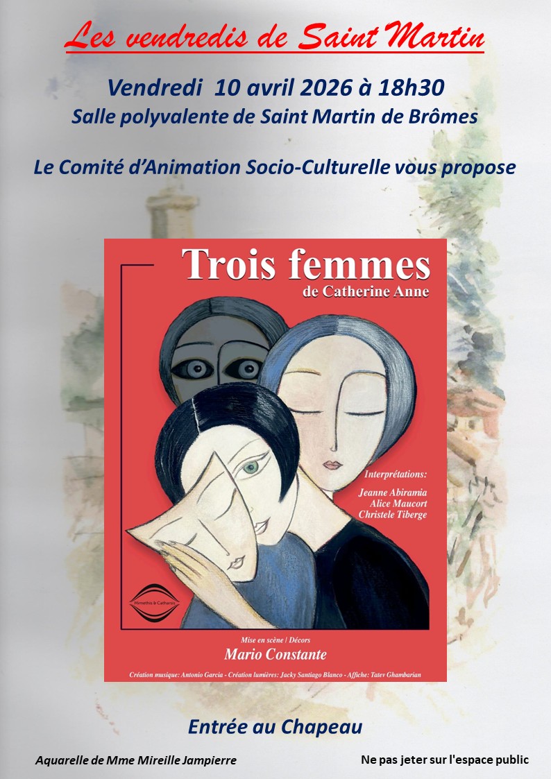 10 avril 2026, 18h30, salle polyvalente; les vendredis de Saint-Martin :
