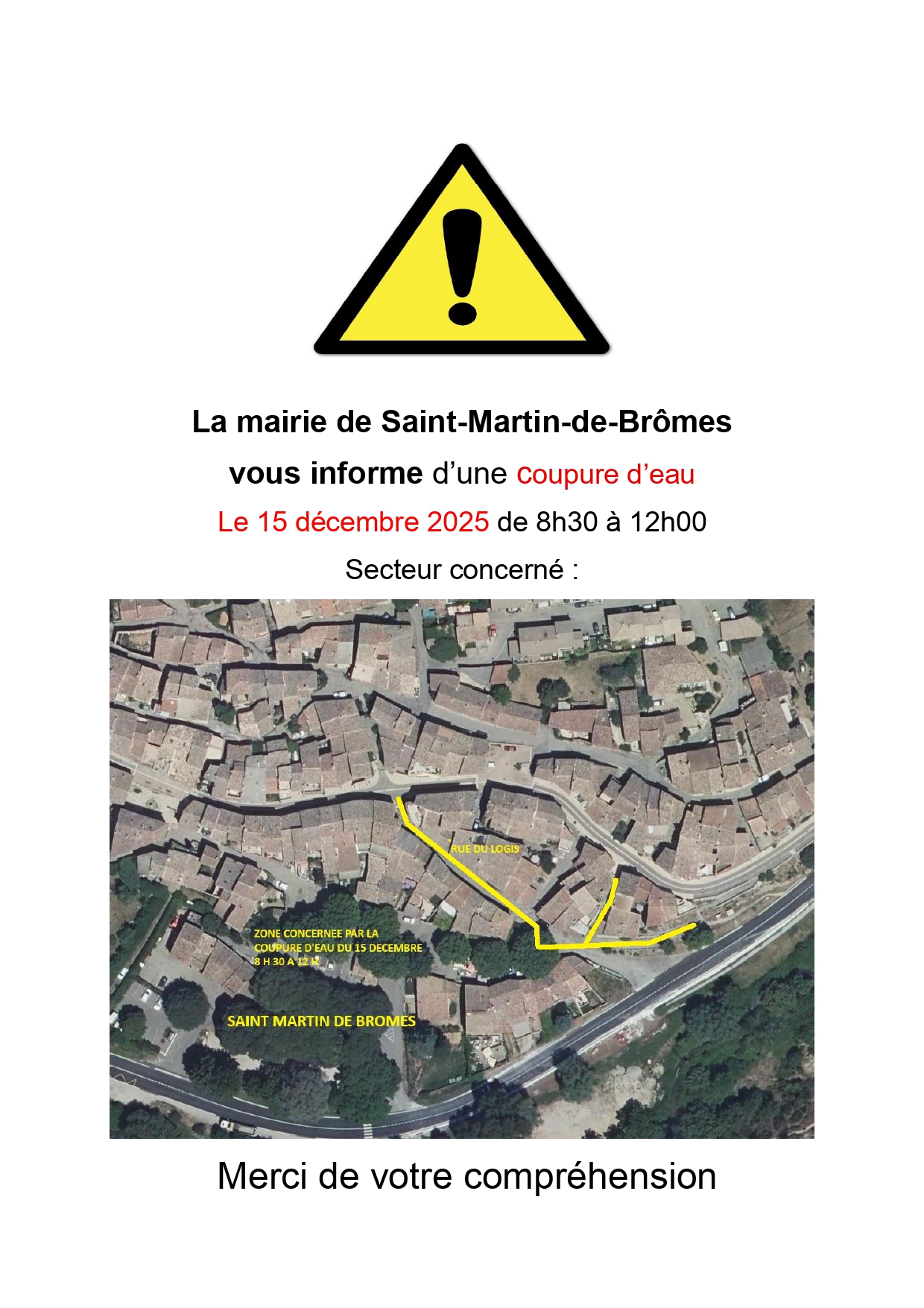 15 décembre 2025 : coupure d’eau de 8h30 à 12h00