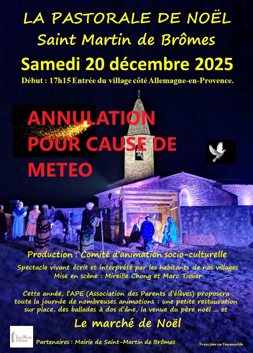 20 décembre, seule, la pastorale est annulée en raison des mauvaises conditions climatiques. Le marché de Noël est maintenu