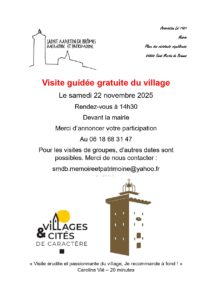 22 novembre 2025, 14h30 : visite guidée gratuite du village