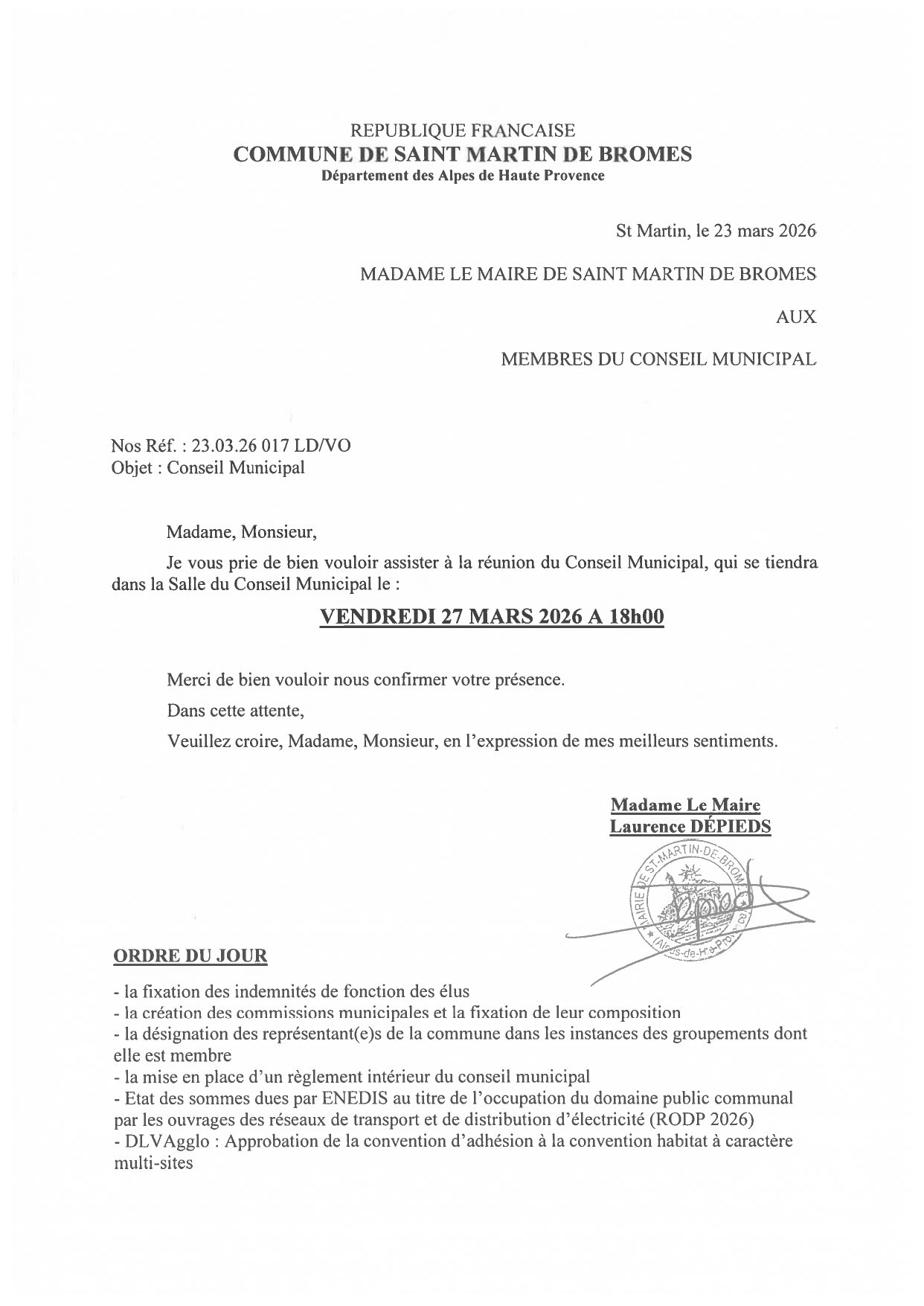 27 mars 2026; 18h00 : Conseil municipal