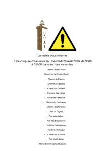 29 avril 2026 : Coupure d’eau dans les secteurs ci-dessous; de 9h00 à 16h00