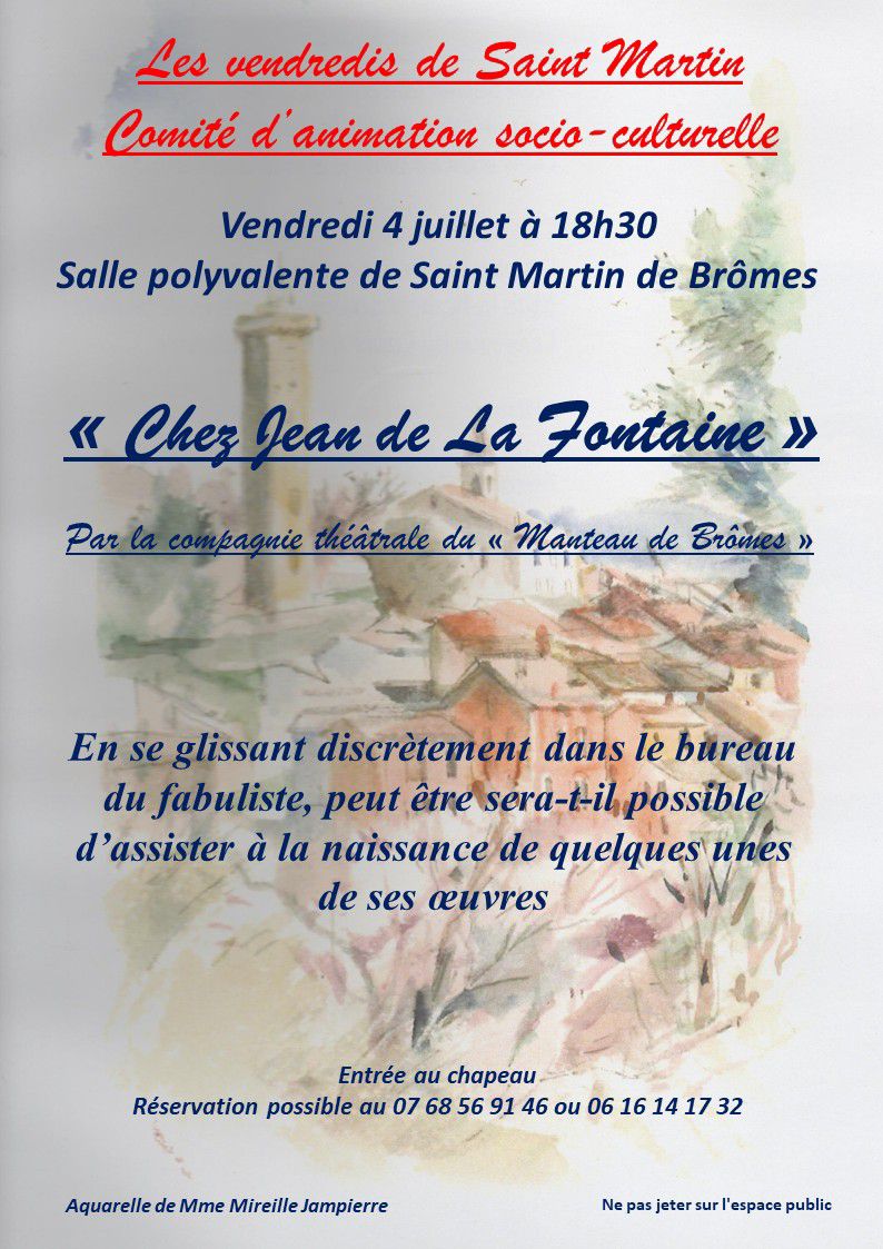 4 juillet, 18H30, salle polyvalente, les vendredis de Saint-Martin: Chez Jean de La Fontaine