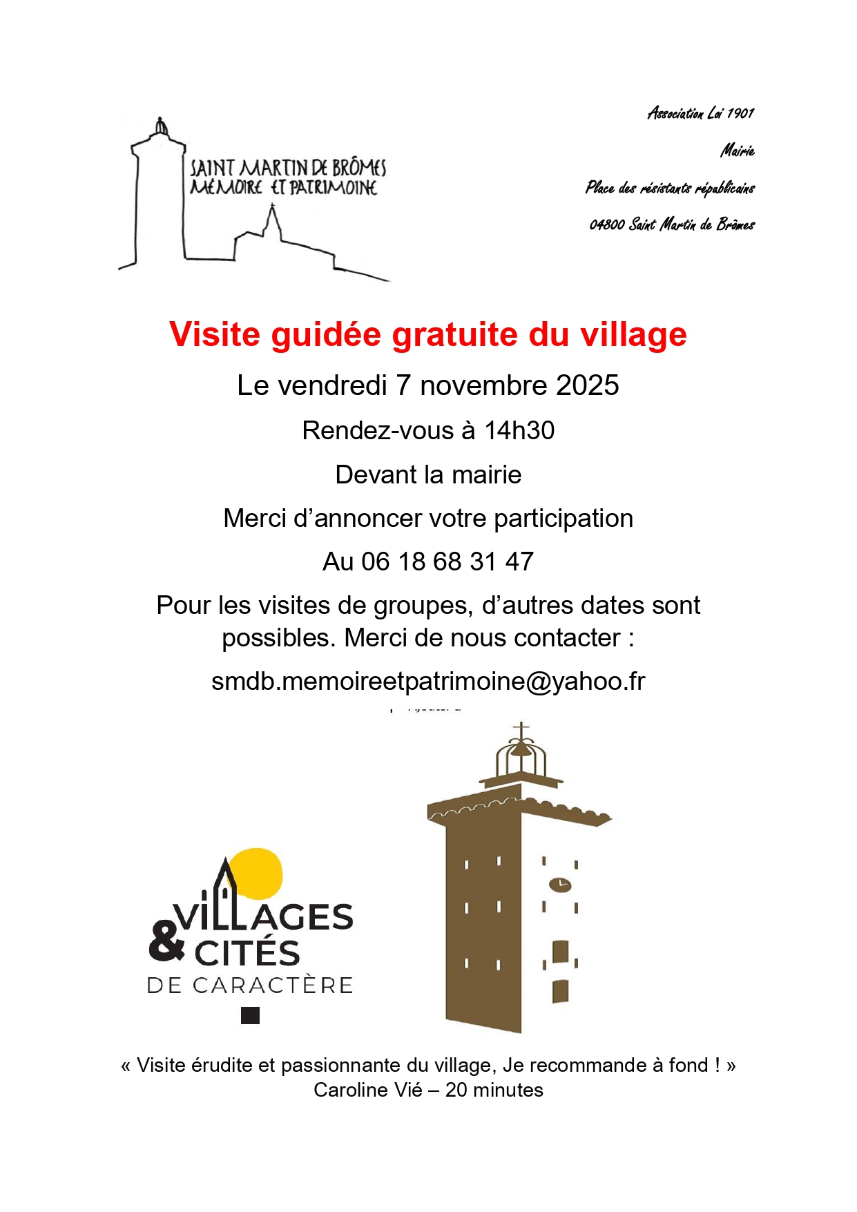 7 novembre, 14h30 : visite guidée gratuite du village