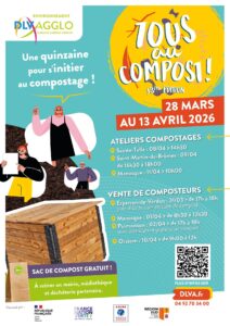 Dans le cadre de l’opération « Tous au compost » organisé par la DLVA, un atelier compostage aura le jeudi 9 avril de 16h30 à 18h00, place de la Libération.