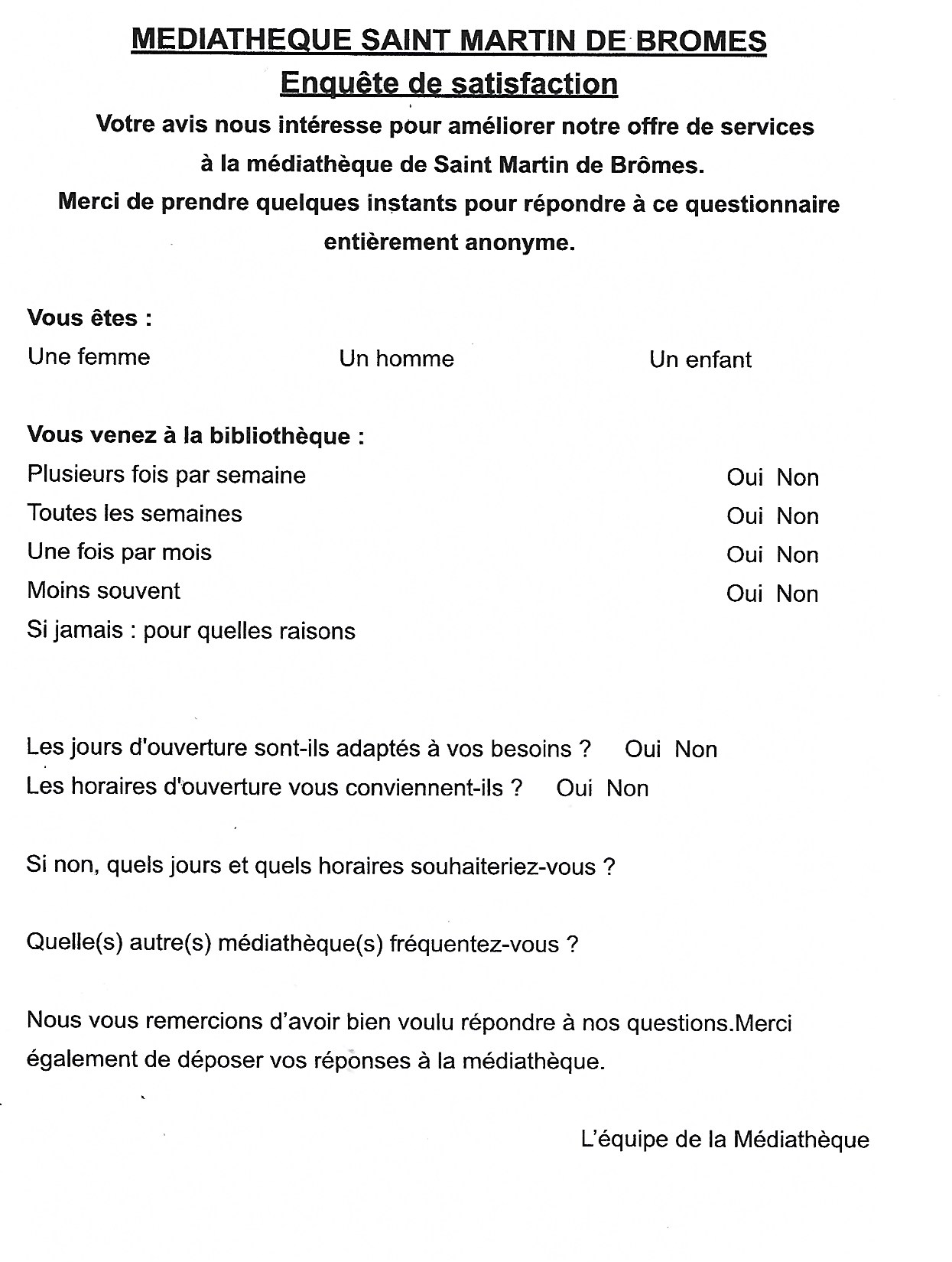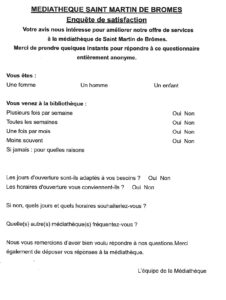 Nos amies de la bibliothèque organisent un sondage sur le fonctionnement de notre médiathèque.